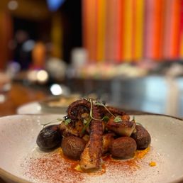 Perfection. Some of the best octopus I've had in a long time. The piña and vodka, delicious. Great service. Open restaurant style allows for views of the Aria as people are walking by. Definitely coming back sometime. Great choice for tapas.